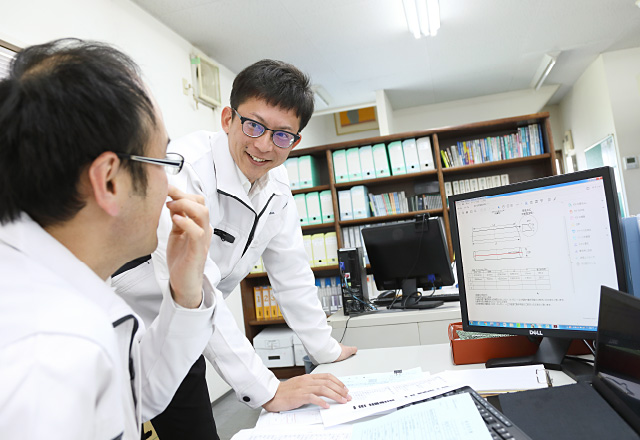 「まだ私は経験不足で、図面の読解力を含めて加工技術に関する知識を深めているところです。自社工場と協力会社による製作ネットワークを活用すれば、大規模な機器や超精密な装置まで高い要求に応えることが出来ます。それをうまくコーディネートするのが営業担当者の役目です。今は周囲の人に助けられることが多いのですが、早くモノづくり集団を牽引できる実力を身につけたいと思っています」
