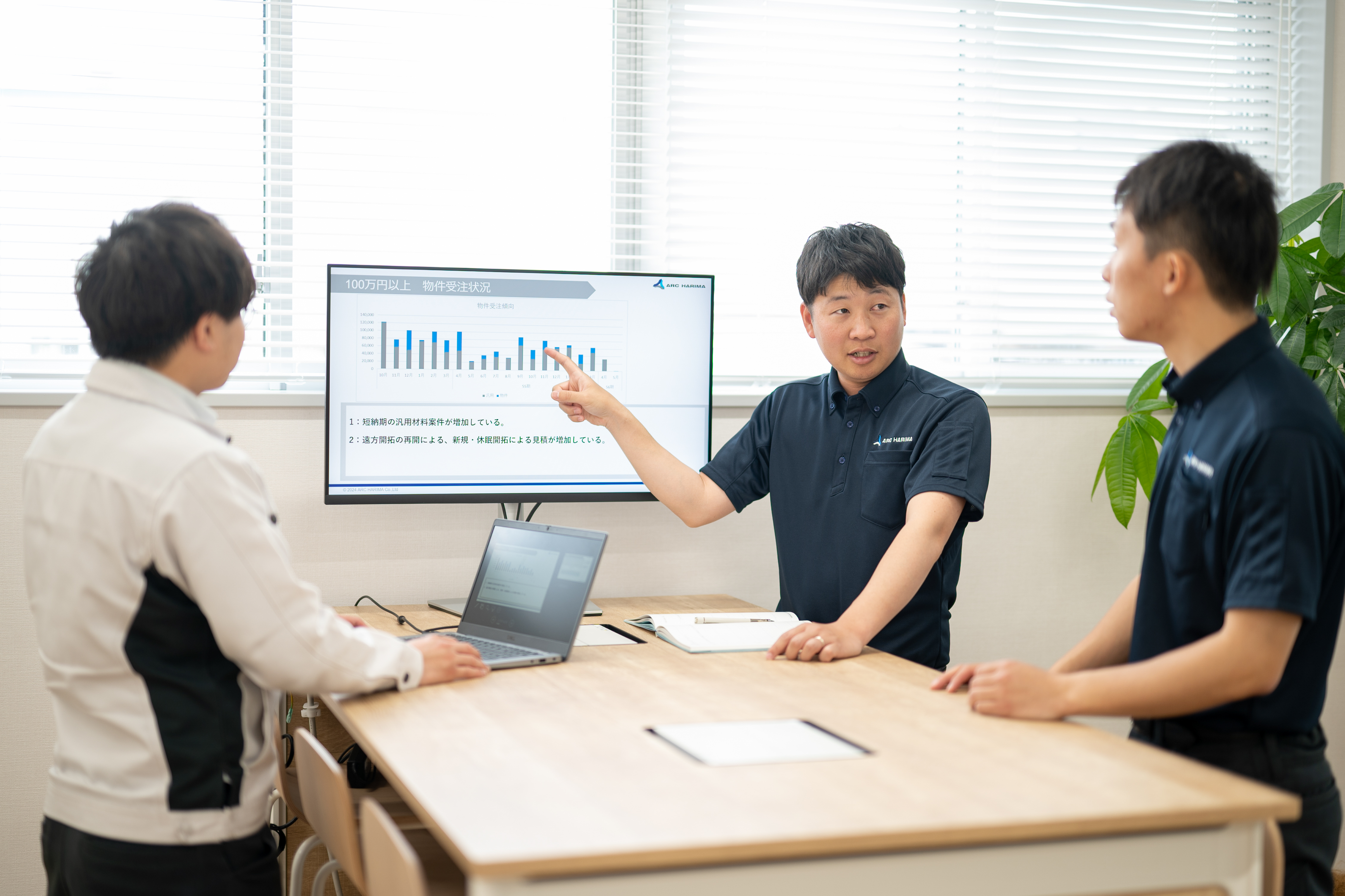 日々お客様とお取引をする中で、どうしても納品スケジュールが間に合わない物件の依頼があることもしばしば発生します。 お客様が希望される納期と当社が対応できる期日がどうしても調整できないこともあり、課題に感じているところです。そんな中でも、できる限りご要望にお応えできるように社内や外注先と調整をし、納品した時にお客様に感謝していただけた時は、この上ない達成感とやりがいを感じます。 「中山に頼めば大丈夫」そう言っていただけるように、何度も訪問を重ねてお客様に頼っていただけるよう、お客様との折衝回数はこだわって活動しています。 各社員によって営業スタイルは異なりますが、自身が考えた営業スタイル、会社の理念にも繋がる「自立創造経営」を体現して行きたいと思います。